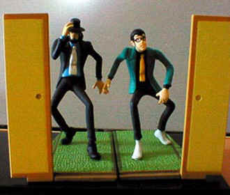 これは有名かな? 旧ルのフィギュアコレクションシリーズ。本当はルパンと次元の背後に五右衛門が仁王立ちしているはず(笑)。そう、言わずと知れた「十三代五エ門登場」のワンシーンです。